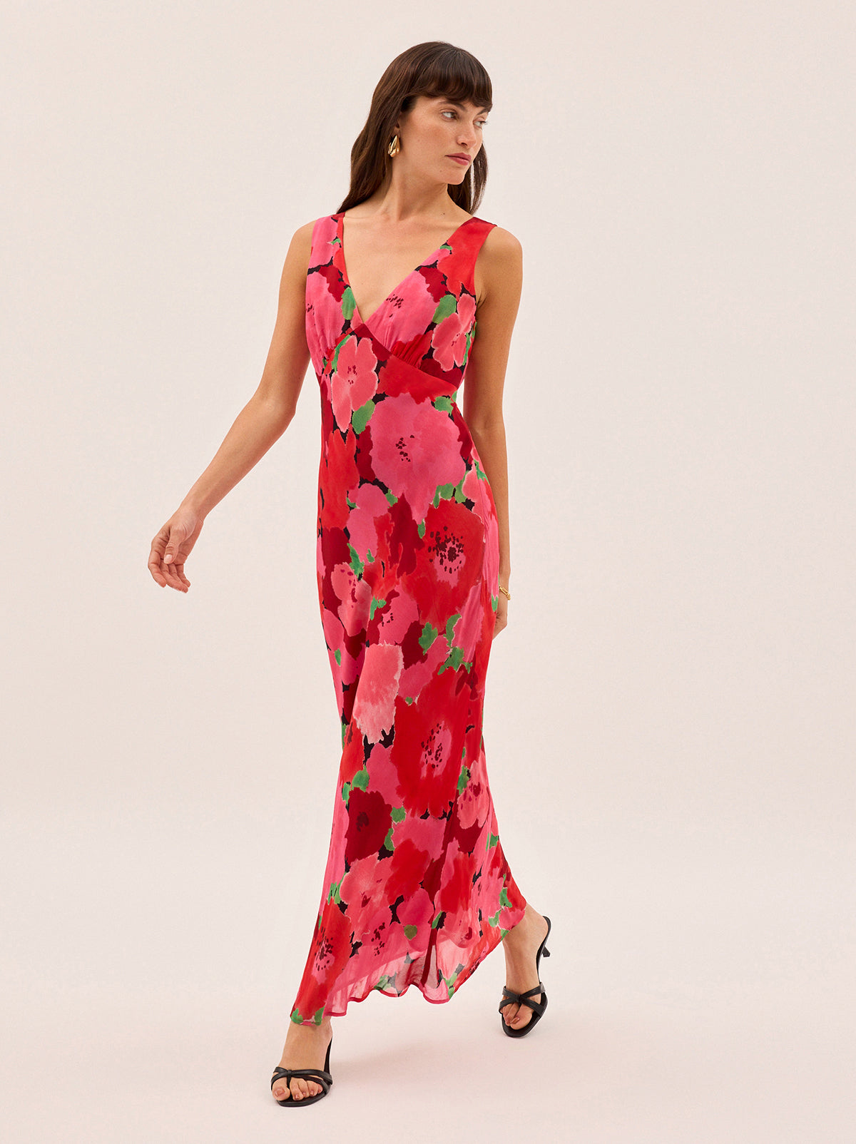 The bestselling silhouette you know and love - now in a painterly pink floral print. The Danna Pink Watercolour Floral Print Dress is cut on the bias for a beautifully skimming fit, with a deep V-neckline and a flattering tie at the back for added shape. The sleeveless design and midi length make it a timeless staple for everything from weddings to weekend plans.